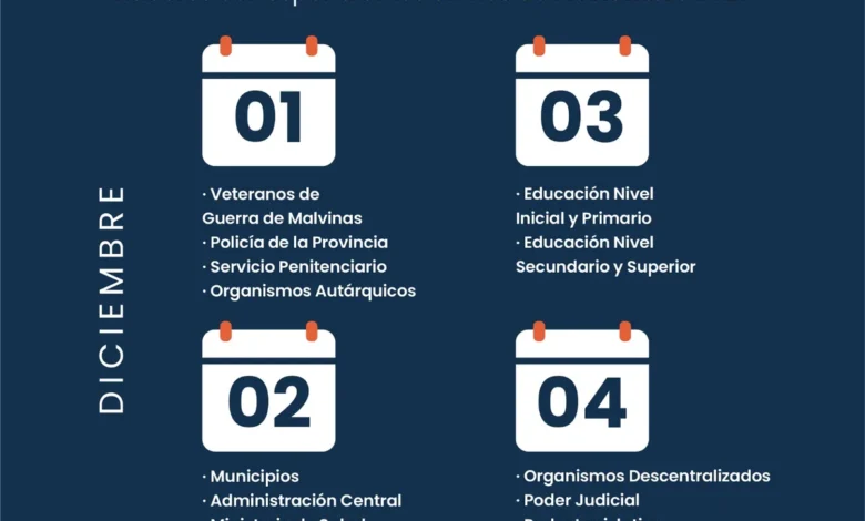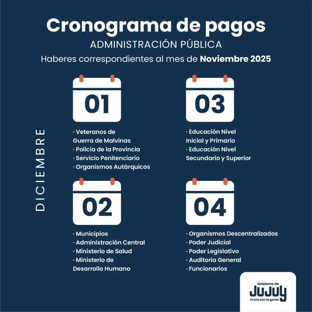 El calendario de pago de los haberes correspondientes al mes de noviembre de 2025 para todo el personal de la Administración Pública Provincial dará inicio este 1 de diciembre y se extenderá hasta el 4.